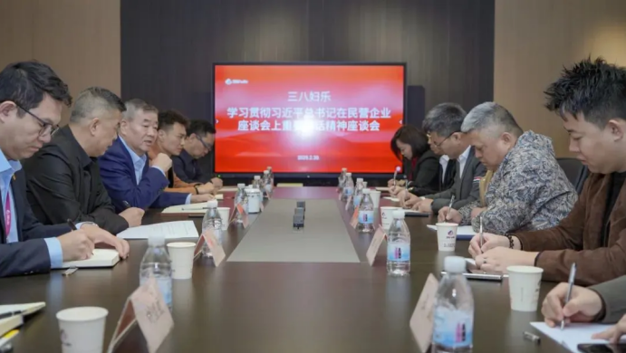 2 月 20 日,陜西三八婦樂科技集團在三八婦樂健康文化交流中心召開 “學(xué)習(xí)貫徹習(xí)近平總書記在民營企業(yè)座談會上重要講話精神座談會”。此次會議聚焦總書記對民營企業(yè)發(fā)展的重要指示,集團內(nèi)部深入探討如何在政策引領(lǐng)下,進一步優(yōu)化企業(yè)發(fā)展戰(zhàn)略,強化社會責(zé)任擔(dān)當。參會人員圍繞創(chuàng)新驅(qū)動、市場拓展、服務(wù)升級等話題展開熱烈討論,為企業(yè)在新形勢下的穩(wěn)健發(fā)展奠定思想基礎(chǔ),明確了緊跟國家政策步伐、以創(chuàng)新推動健康產(chǎn)業(yè)發(fā)展的方向。