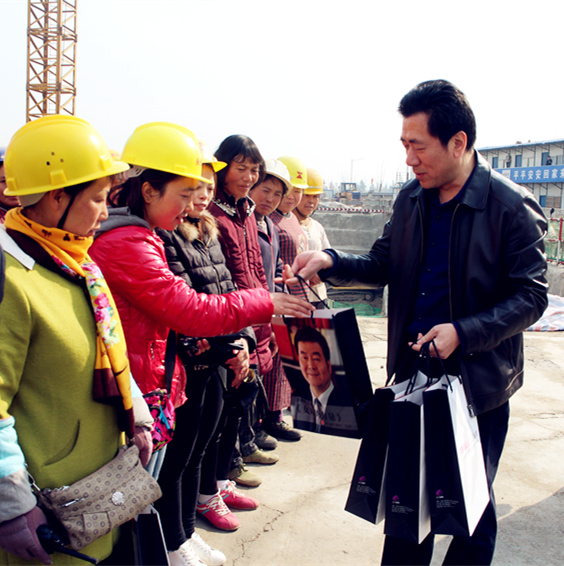 陜西三八婦樂(lè)科技股份有限公司周立民副總一行帶隊(duì)到達(dá)三八婦樂(lè)時(shí)代廣場(chǎng),向在場(chǎng)的50名工地女工人送去慰問(wèn)品和節(jié)日祝福。