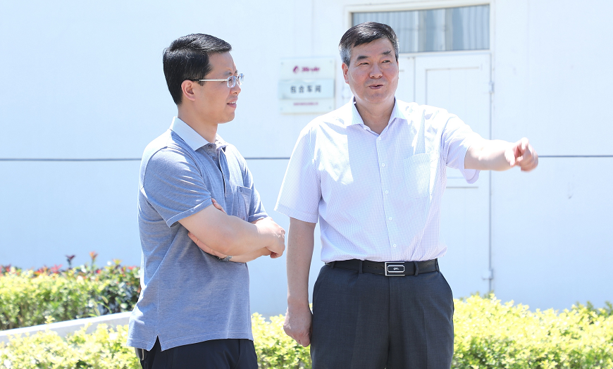 袁曉峰董事長(zhǎng)向單舒平書(shū)記(中)和張辰宇院長(zhǎng)(左一)介紹產(chǎn)品研發(fā)情況